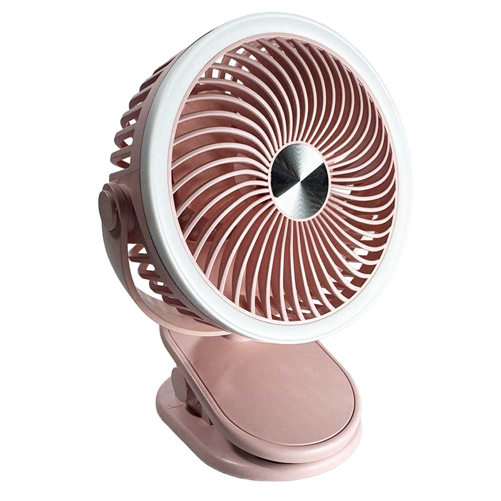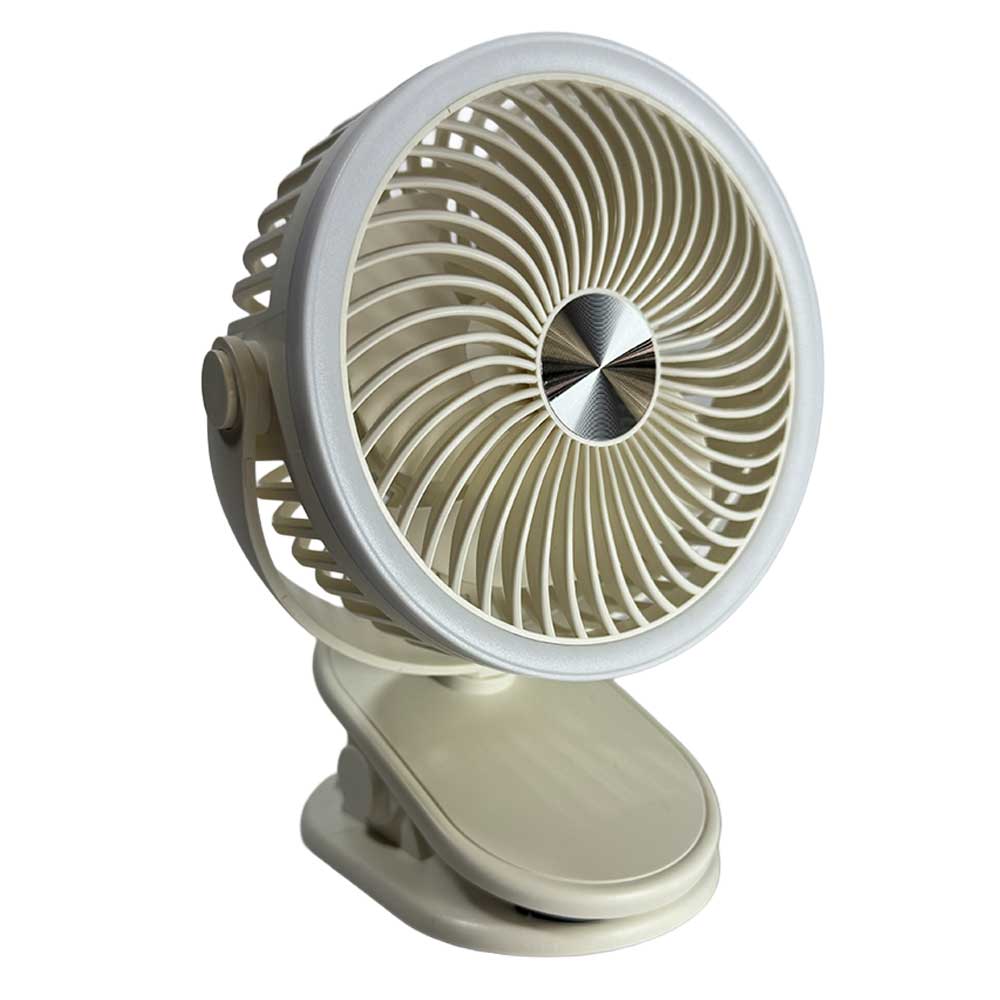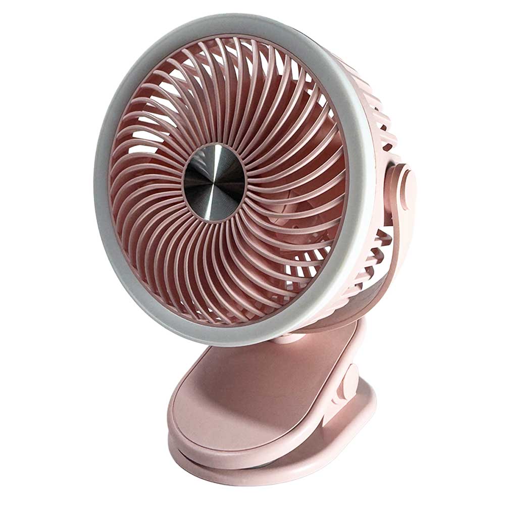 A quiet little powerhouse you can clip anywhere. This table lamp clamped fan works two ways—stand it on your desk or clamp it to a shelf, headboard or stroller handle—then aim the breeze exactly where you want it. A soft ring night-light makes it perfect for bedside use.