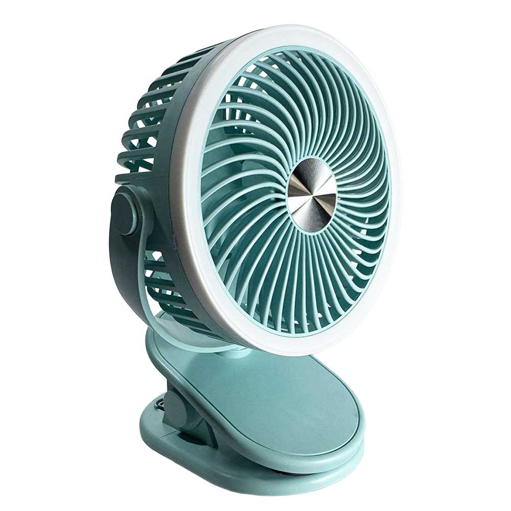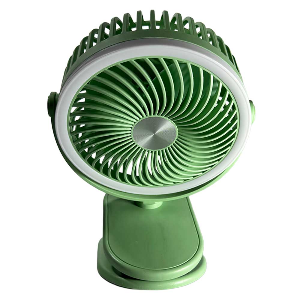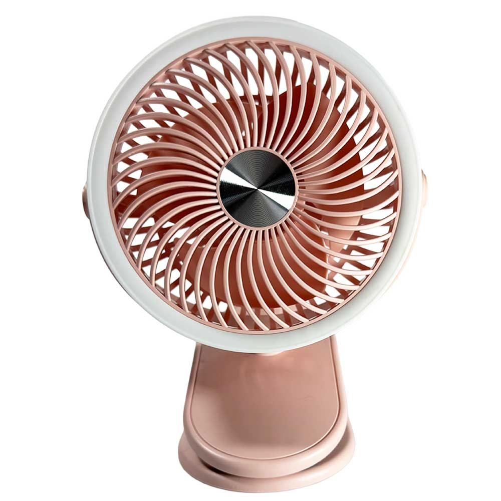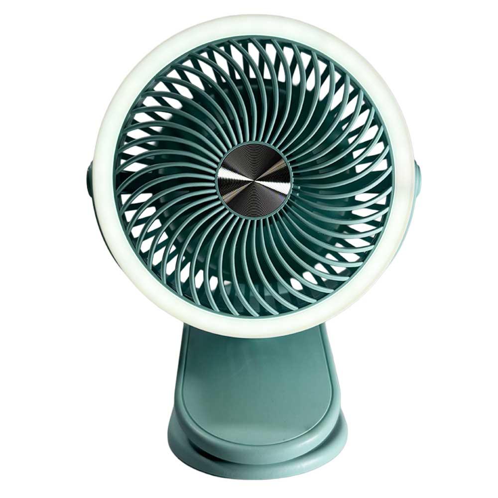 A quiet little powerhouse you can clip anywhere. This table lamp clamped fan works two ways—stand it on your desk or clamp it to a shelf, headboard or stroller handle—then aim the breeze exactly where you want it. A soft ring night-light makes it perfect for bedside use.