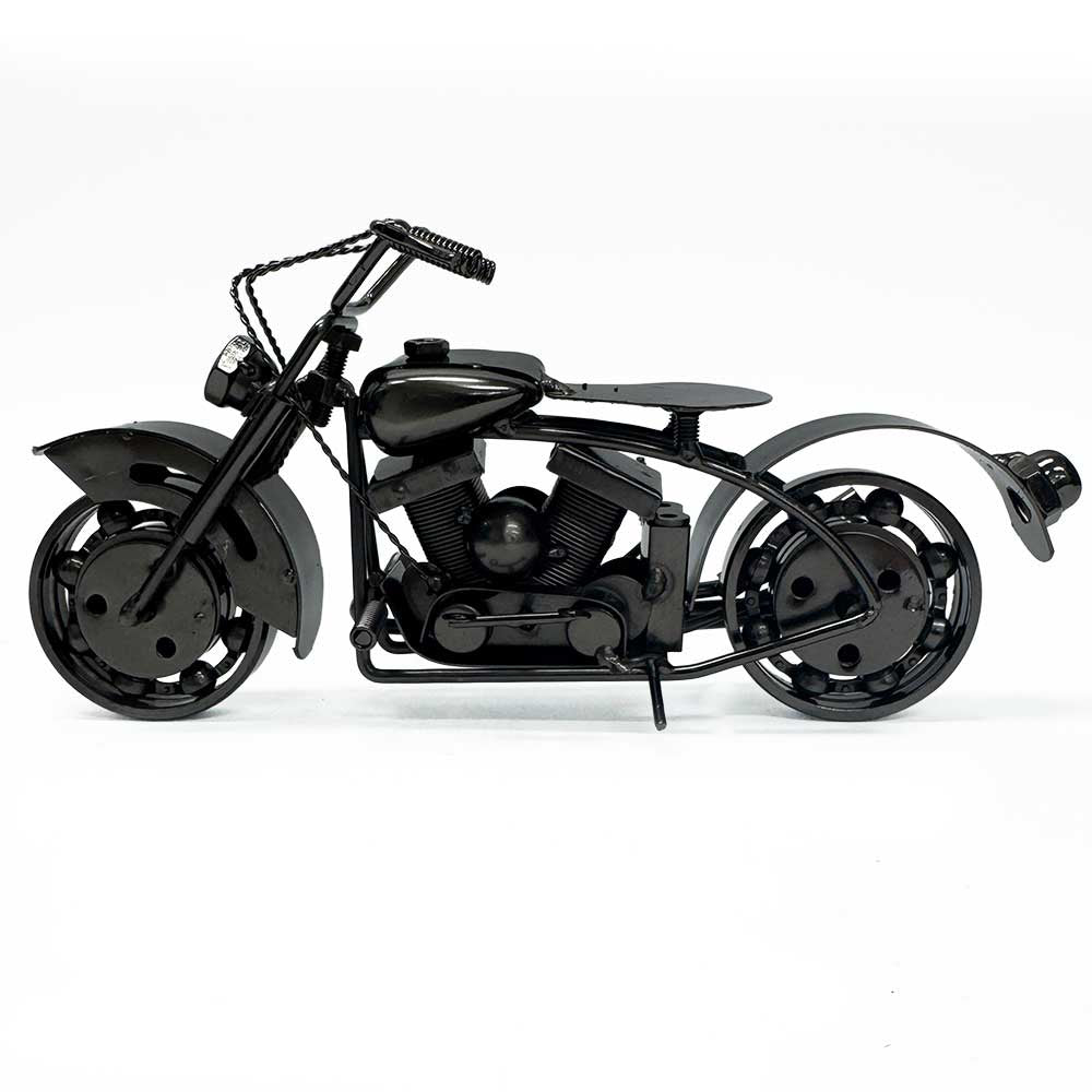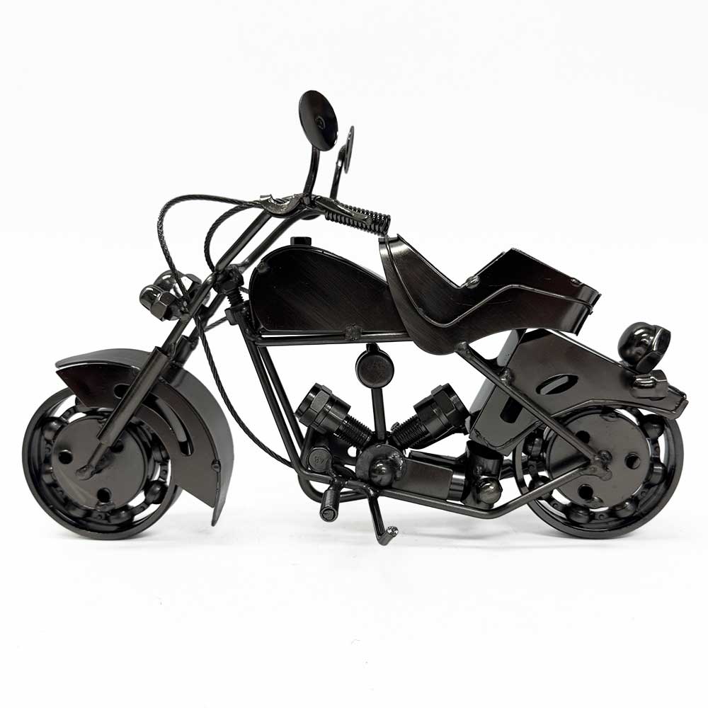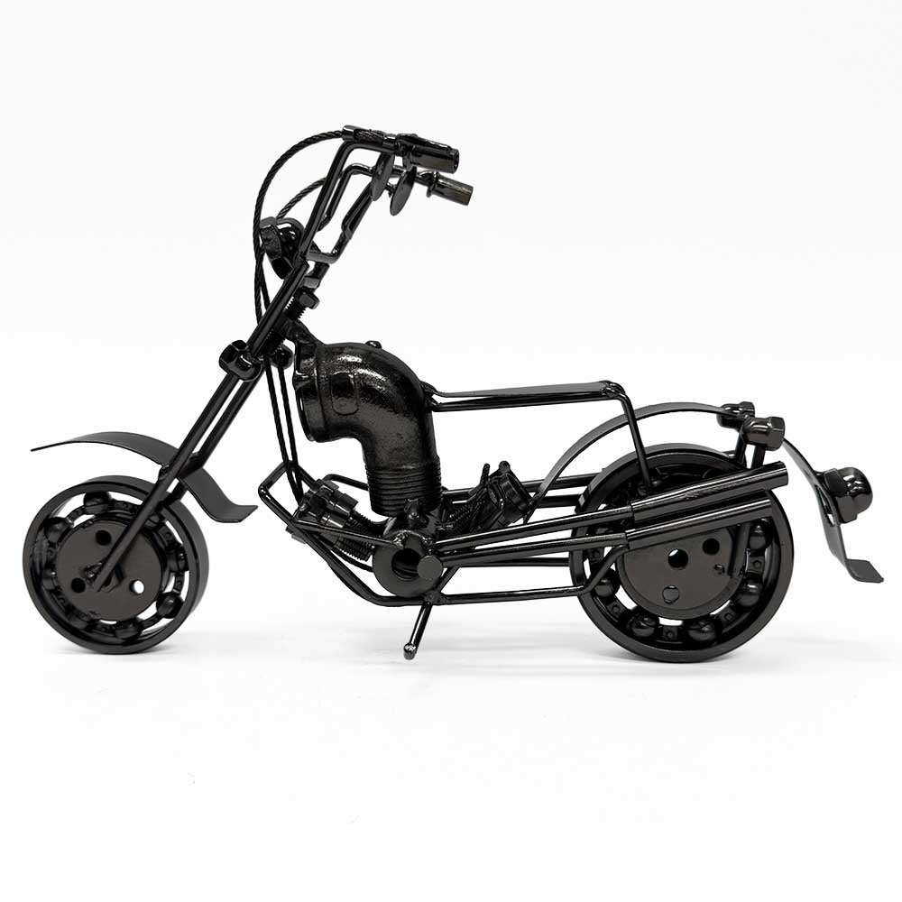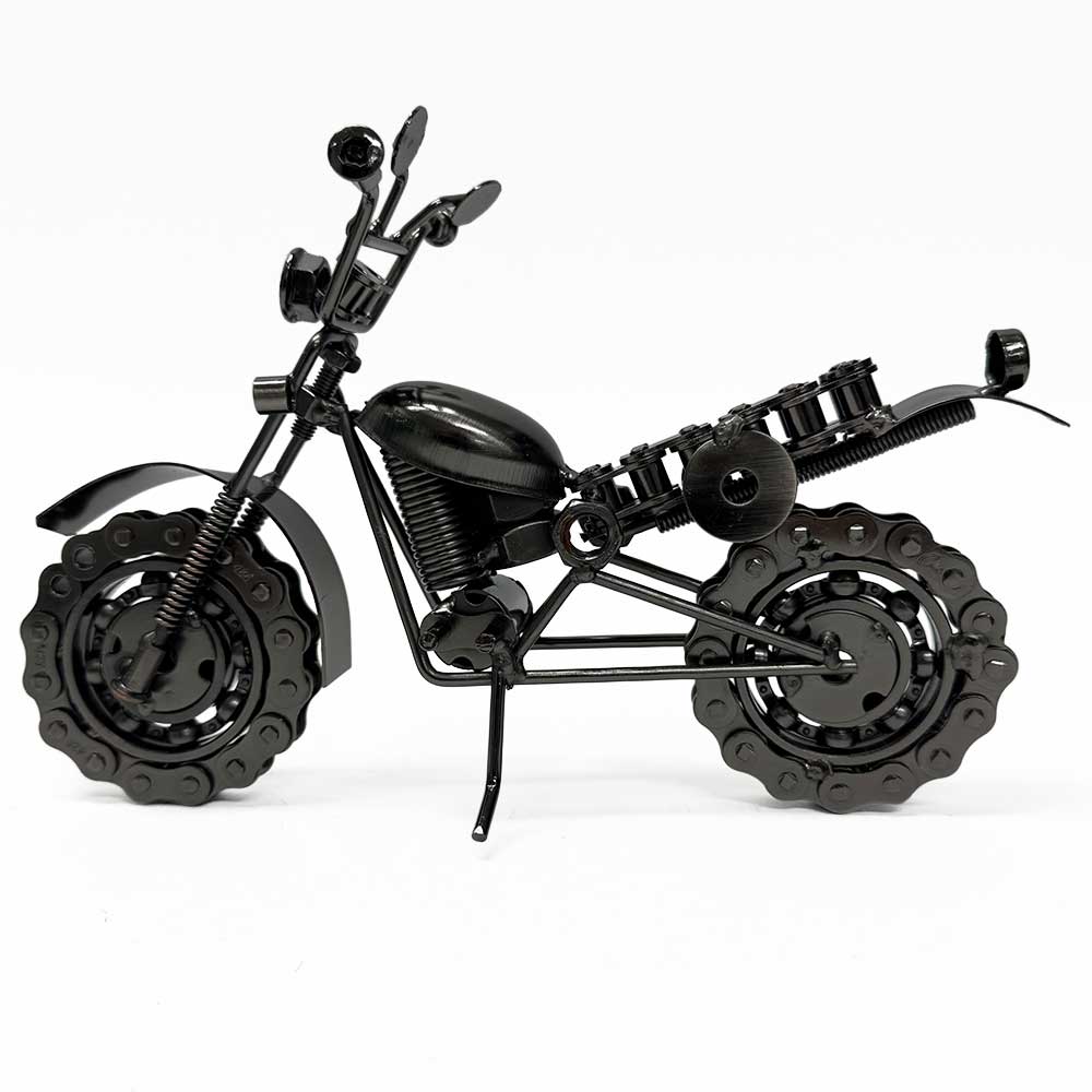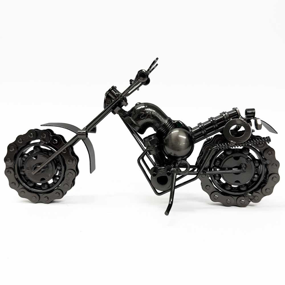 Each piece is sculpted from real steel components — including repurposed bolts, chains, gears and springs — giving it a bold, authentic character. Whether you're decking out a shelf, workbench or collector display, these large-format bikes make a brilliant centrepiece.