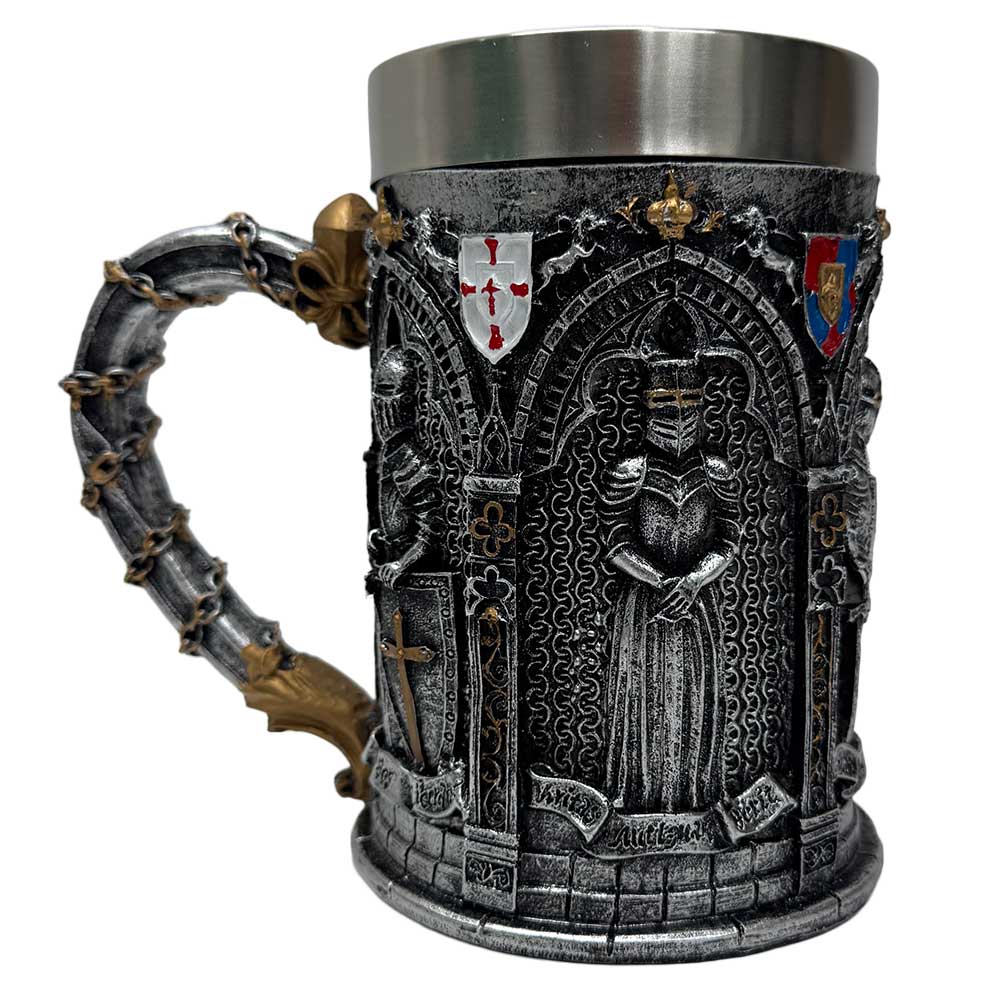 The Knight’s Oath Tankard honours the code of steel with a bold, battle-ready design. This oversized gothic mug is sculpted with full knight armour reliefs, chainmail textures, and crested shields that wrap the exterior like a fortress. Whether you’re toasting in a tavern, setting the stage for your next D&D campaign, or gifting a fellow squire, this tankard makes an unforgettable statement of loyalty and strength.