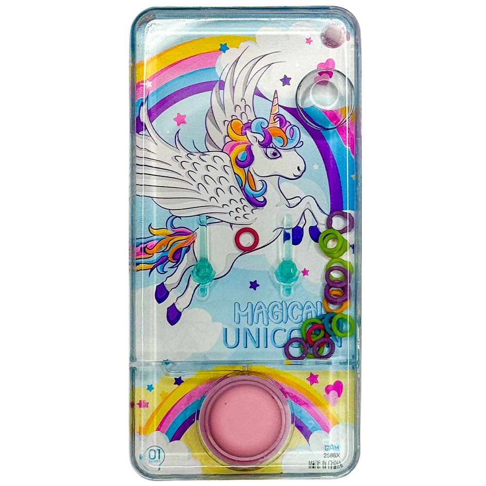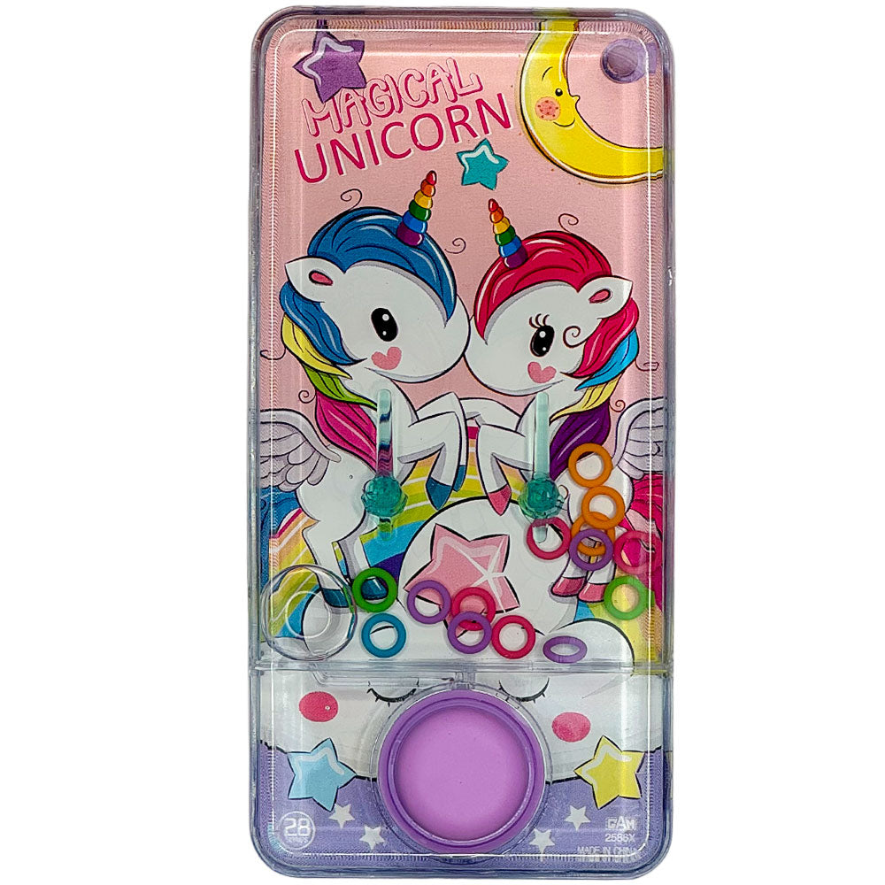 Make little moments magical. This pocket-size Unicorn Water Game lets kids press the buttons to swirl the water and land tiny rings on the pegs—no screens, no batteries, just calm, satisfying fun.